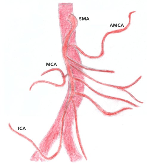 3.3.2. What Is Less Known: A New Artery: The Accessory Middle Colonic Artery (AMCA)