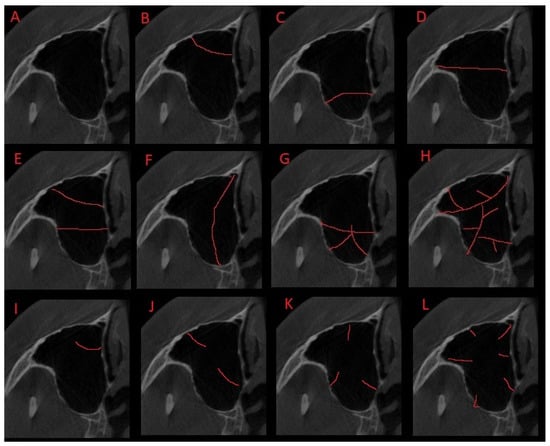 - Schiller, L.A.; Barbu, H.M.; Iancu, S.A.; Brad, S. Incidence, Size and Orientation of Maxillary Sinus Septa—A Retrospective Clinical Study. J. Clin. Med. 2022, 11, 2393. [Google Scholar] [CrossRef]