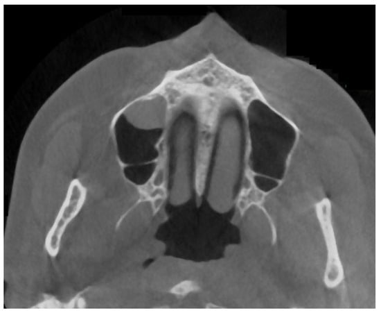 - Temur, T.; Burcu, E.; Haluk, Ö. Evaluation of paranasal sinus anatomic variations and mucosal changes with cone beam computed tomography. Balk. J. Dent. Med. 2022, 26, 27–32. [Google Scholar]