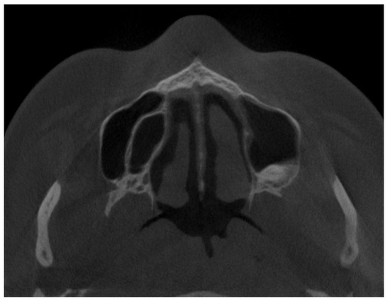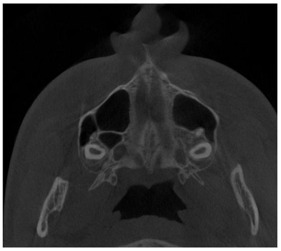 - Manila, N.G.; Arashlow, M.T.; Ehlers, S.; Liang, H.; Nair, M.K. Cone-beam computed tomographic imaging of silent sinus syndrome: A case series and a literature review. Imaging Sci. Dent. 2020, 50, 365–371. [Google Scholar] [CrossRef] [PubMed]
