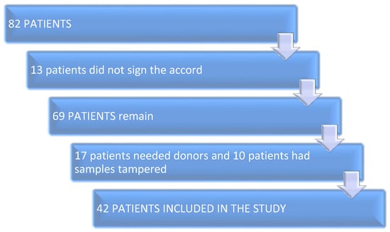 In this prospective unicentric pilot study, the research team collected follicular fluid and serum blood sample from the female patients on the day of ovarian puncture during the intracytoplasmic sperm injection (IVF-ICSI) protocol. At first, 82 patients were taken into consideration. After discussing and explaining the procedure, 13 did not sign the accord. After preliminary results, 17 patients needed oocyte and/or sperm donors, and 10 patients had their blood sample or the follicular fluid tampered with, and could not be included. The remaining 42 patients were enrolled in the study over the duration of 24 months from 14 February 2021 until 14 February 2023.