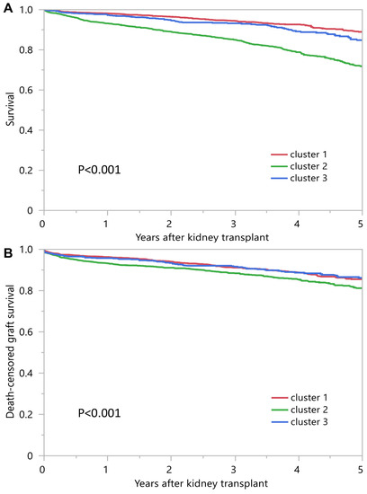 3.2. Posttransplant Outcomes of Each Kidney Transplant Cluster