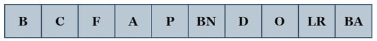With this coding scheme, the individuals of the genetic algorithm consist of 10 parameters (genes), whose structure is presented in Figure 4.