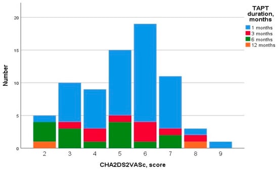 Figure 1 presents the distribution of the duration of TAT depending on the CHA2DS2-VASc score.