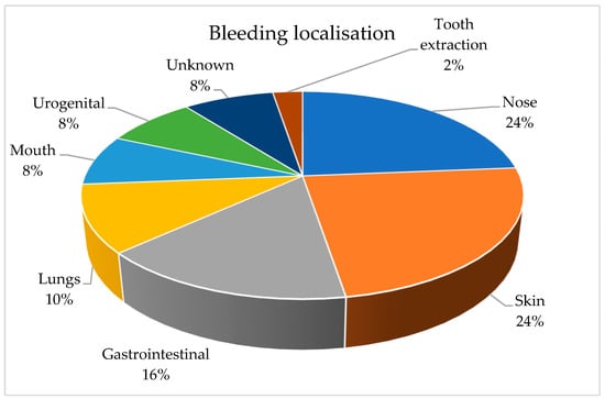 Distribution of bleeding depending on bleeding localization.