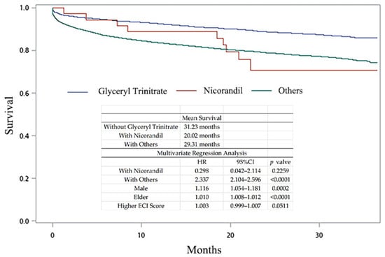 3.5. The Difference in NO-Enhancing Agents for the Survival of Hyperlipidemia Patients with Acute Myocardial Infarction