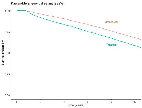 Normally distributed continuous variables were expressed as mean ± standard deviation, while categorical variables were expressed as frequencies and percentages. The normality of the data distribution was tested by the Shapiro–Wilk test. Baseline characteristics were compared between groups using the Student’s t-test for continuous variables and Pearson’s χ2 test for categorical variables. Survival at 1 and 10 years was assessed using the Kaplan–Meier method and compared using the log-rank test. In addition, hazard ratios (HRs) for survival were estimated using a Cox proportional hazards model. Cox regression analysis was adjusted for age, gender, creatinine, UNOS recipient status, prior LVAD, IABP, or ECMO, donor age, donor gender, and ischemic time. All statistical analyses were performed with R Statistical Software, version 4.2.1 (R Foundation for Statistical Computing, Vienna, Austria). A p-value of <0.05 was considered to indicate the statistical significance of the differences between the two groups.