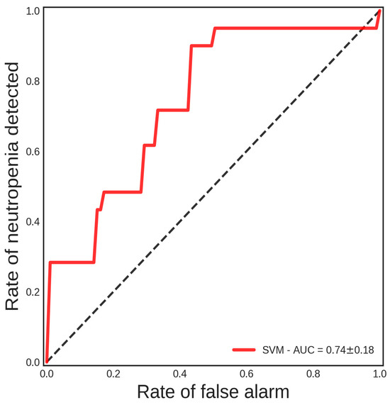 Our results demonstrate that fingertip NIR spectroscopy coupled with machine learning effectively classifies patients according to the established cut-off point for neutrophil count levels (Figure 5). Furthermore, this classification model was obtained using a single machine learning algorithm (SVM) without further complex and black box workflow steps. Therefore, NIR spectroscopy is a quick and safe tool for assessing neutropenia in a solid-tumor oncologic patient setting. This technology displays its potential, especially in remote and vulnerable areas, where access to healthcare professionals and widely available laboratory resources are scarce, contributing to the efficiency of the health system and improving resource allocation [20].