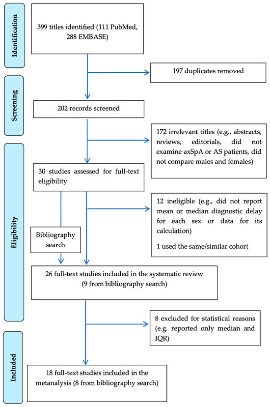 Bandinelli F, Martinelli-Consumi B, Manetti M, Vallecoccia MS. Sex Bias in Diagnostic Delay: Are Axial Spondyloarthritis and Ankylosing Spondylitis Still Phantom Diseases in Women? A Systematic Review and Meta-Analysis. Journal of Personalized Medicine. 2024; 14(1):91. https://doi.org/10.3390/jpm14010091