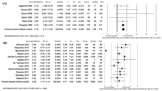 APA StyleBandinelli, F., Martinelli-Consumi, B., Manetti, M., & Vallecoccia, M. S. (2024). Sex Bias in Diagnostic Delay: Are Axial Spondyloarthritis and Ankylosing Spondylitis Still Phantom Diseases in Women? A Systematic Review and Meta-Analysis. Journal of Personalized Medicine, 14(1), 91. https://doi.org/10.3390/jpm14010091
