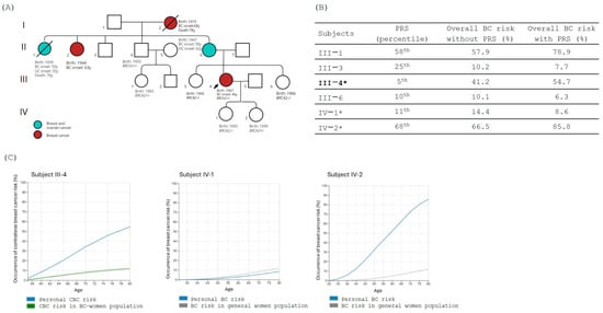 Rizzacasa, B.; Nicolì, V.; Tancredi, C.; Conte, C.; Salehi, L.B.; Carriero, M.L.; Longo, G.; Cirigliano, V.; Lopez, L.I.; Palao, B.; et al. Implementing the Risk Stratification and Clinical Management of Breast Cancer Families Using Polygenic Risk Score Evaluation: A Pilot Study. J. Pers. Med. 2024, 14, 1034. https://doi.org/10.3390/jpm14101034
