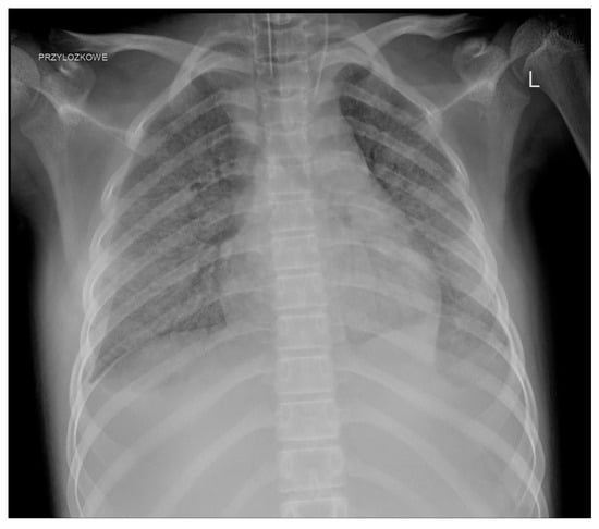 We observed a few complications related to GC administration. One patient developed an anaphylactic reaction during the second transfusion. One girl, who required hospitalisation in the ICU as a result of infection, about 2 h after the administration of the GC, developed shock symptoms with the deterioration of the general condition and circulatory and respiratory instability; transfusion-related acute lung injury (TRALI) was diagnosed after further investigation (Figure 3).