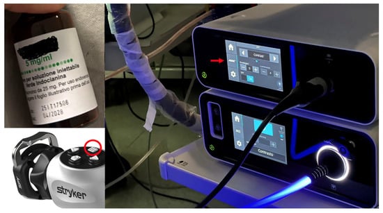 ICG-enhanced visualization instruments can be integrated within surgical tools; in our series, we used a Leica M530 OHX microscope (Leica Microsystems, Wetzlar, Germany) without ICG filter and separately a Stryker 1688 AIM 4K endoscope (Kalamazoo, MI, USA) exploiting its SPY modality, able to illuminate the surgical field with a wavelength covering the ICG absorption band, to observe in real time angiographic images on the endoscope video screen after ICG intravenous injection (ICG is not reabsorbed into the intestine or hepatic circulation).