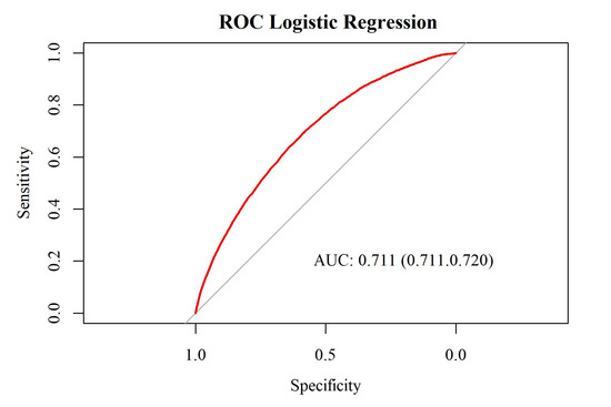 - DeLong, E.R.; DeLong, D.M.; Clarke-Pearson, D.L. Comparing the areas under two or more correlated receiver operating characteristic curves: A nonparametric approach. Biometrics 1988, 44, 837–845. [Google Scholar] [CrossRef]
