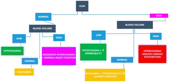Interpretation of volume status integrated with pulmonary extravascular water index. Modified from de Bakker et al., 2022 []. ELWI: extravascular lung water index.
