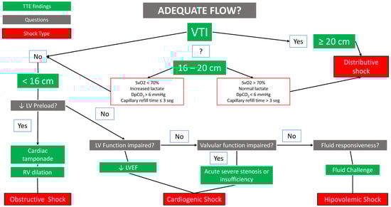 - Mercadal, J.; Borrat, X.; Hernández, A.; Denault, A.; Beaubien-Souligny, W.; González-Delgado, D.; Vives, M.; Carmona, P.; Nagore, D.; Sánchez, E.; et al. A simple algorithm for differential diagnosis in hemodynamic shock based on left ventricle outflow tract velocity–time integral measurement: A case series. Ultrasound J. 2022, 14, 36. [Google Scholar] [CrossRef]
