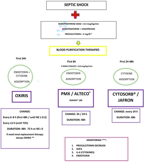 - Mehta, Y.; Paul, R.; Ansari, A.S.; Banerjee, T.; Gunaydin, S.; Nassiri, A.A.; Pappalardo, F.; Premužić, V.; Sathe, P.; Singh, V.; et al. Extracorporeal blood purification strategies in sepsis and septic shock: An insight into recent advancements. World J. Crit. Care Med. 2023, 12, 71–88. [Google Scholar] [CrossRef] [PubMed]