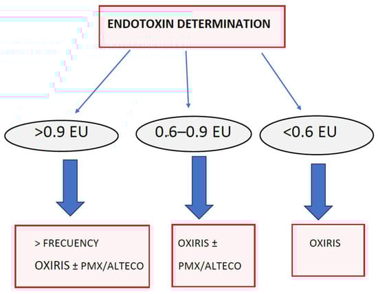 - Novelli, G.; Ferretti, G.; Ruberto, F.; Morabito, V.; Pugliese, F. Early management of endotoxemia using the endotoxin activity assay and polymyxin B-based hemoperfusion. Contrib. Nephrol. 2010, 167, 91–101. [Google Scholar]