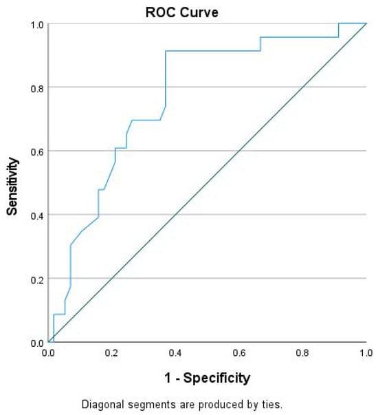 Based on clinical endpoints, we assessed the prognostic value of GLS and NT-proBNP. Considering that hospitalization for HF preceded almost all HF-related deaths, we paid attention to the group achieving the primary endpoint. That group showed higher NT-proBNP and lower absolute GLS values at baseline compared to the event-free group (Table 1). Notably, those groups did not differ in other significant parameters, like most demographic characteristics, QRS duration, pharmaceutical therapy etc. On Cox regression analysis, lower GLS absolute value, higher NT-proBNP and the presence of diabetes mellitus at baseline were associated with higher incidence of death and/or hospitalization due to HF on multivariate analysis (Table 2). In our cohort, using the ROC analysis, we found that GLS had an area under the curve of 0.75, which gave a cutoff value of GLS > −7.92% to predict the occurrence of primary endpoint with very modest sensitivity (69.0%) and specificity (70.4%) (Figure 1).