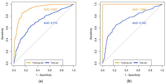 - DeLong, E.R.; DeLong, D.M.; Clarke, D.L. Comparing the Areas under Two or More Correlated Receiver Operating Characteristic Curves: A Nonparametric Approach. Biometrics 1988, 44, 837–845. [Google Scholar] [CrossRef]
