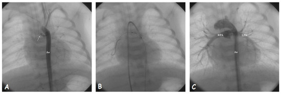 - Santoro, G.; Gaio, G.; Capozzi, G.; Giugno, L.; Palladino, M.T.; Capogrosso, C.; D’aiello, A.F.; Caianiello, G.; Russo, M.G. Fate of Hypoplastic Pulmonary Arteries after Arterial Duct Stenting in Congenital Heart Disease with Duct-Dependent Pulmonary Circulation. JACC Cardiovasc. Interv. 2015, 8, 1626–1632. [Google Scholar] [CrossRef] [PubMed]