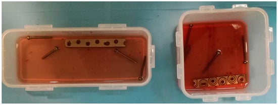 In the sonication method, a low-frequency and intensity ultrasound was performed in a special ultrasonic water bath (BactoSonic, Bandelin, Berlin, Germany), as described by Trampuz et al. [16]. Small-sized implants were covered entirely inside the special container with Ringer’s solution or 0.9% NaCl, while big-sized implants had only a part of them—ranging from 80–90%—covered with one of the aforementioned solutions. Subsequently, the containers with implants were vortexed for 30 s, followed by sonication at a frequency of 35–40 kHz for 1 min. After sonication, additional vortexing was performed for 30 s. This was followed by quantitative inoculation with 100 μLof sonication fluid in a blood agar plate for aerobic culture at 37 °C for 5 days, in a chocolate agar plate in 5% CO2 at 37 °C for 10 days, and in a brucella agar plate for anaerobic culture at 37 °C for 15 days. Furthermore, 3–4 mL of ultrasound fluid was added in thioglycolate broth at 37 °C. If no growth was observed in the plates, then the thioglycolic broth was grown in blood and brucella agar plates. The drills were inspected daily for microbial growth [7]. All samples were handled in a bio-safety chamber to avoid contamination.