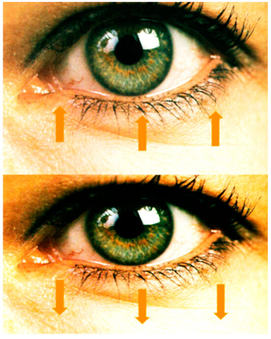 The vertical descent of the orbital region of the face due to aging and ligament laxity (personal collection).