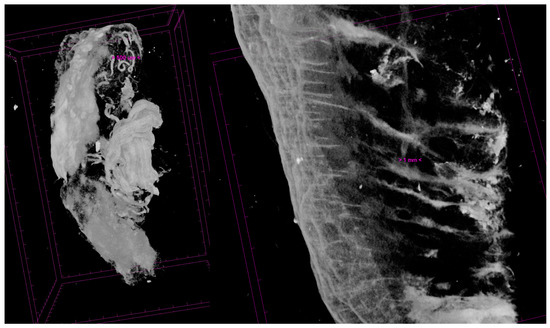 MicroCT relevance of intraSMAS vascular plexus (left) and collagen fibers from SMAS attaching onto the skin (right) (personal collection).