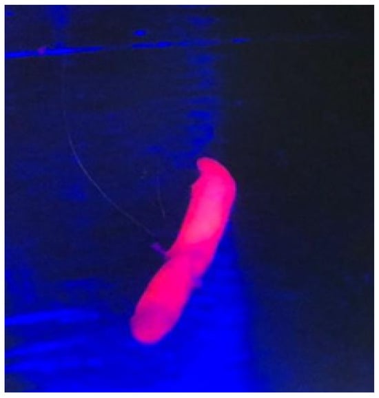 Visualization of the red fluorescent sample under the light of the microscope to confirm the adequacy of the tissue.