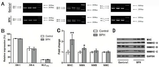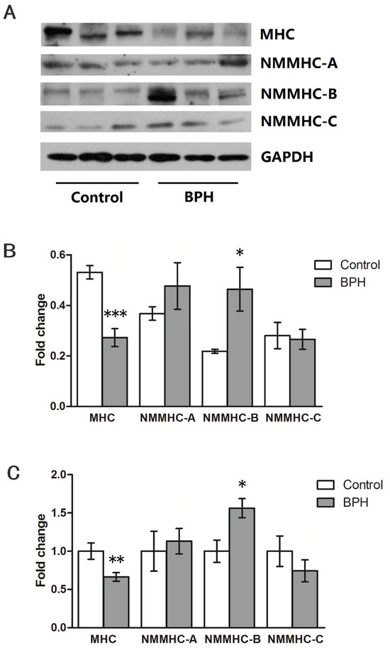 - He, W.; Wang, X.; Zhan, D.; Li, M.; Wang, Q.; Liu, J.; Liu, D.; Fu, X.; Qian, Q.; Li, Y.; et al. Changes in the expression and functional activities of Myosin II isoforms in human hyperplastic prostate. Clin. Sci. 2021, 135, 167–183. [Google Scholar] [CrossRef] [PubMed]