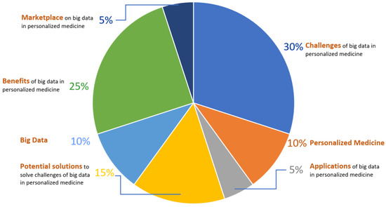 Additionally, the reference list of all the selected papers was searched. Finally, 46 articles were used for this literature review highlighting the trend of precision medicine using big data. Figure 1 shows an analysis of the percentage of references out of a total of 46 that convey each topic in this paper, while Figure 2 shows the PRISMA Flow Diagram. Finally, supplementary to the screening procedure, simple bibliographic data were tabulated for the genesis of ideas and we analyzed the research design.