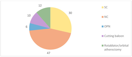 Calcified lesion preparation before IVL use. SC: semi-compliant balloons; NC: non-compliant balloons.