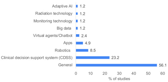 Percentage of studies discussing different technological contexts. Multiple technologies were discussed in some studies.