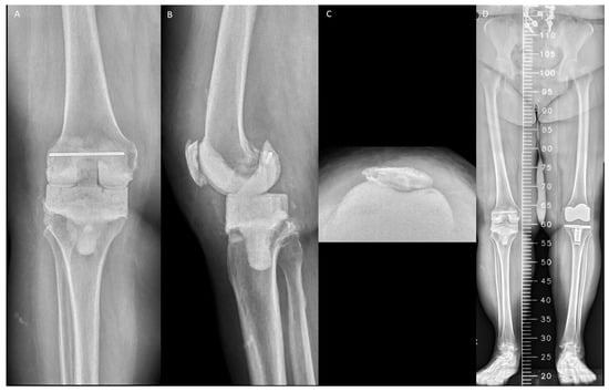 - Kleimeyer, J.P.; McQuillan, T.J.; Arsoy, D.; Aggarwal, V.K.; Amanatullah, D.F. Agreement and Reliability of Lateral Patellar Tilt and Displacement following Total Knee Arthroplasty with Patellar Resurfacing. J. Knee Surg. 2021, 34, 717–720. [Google Scholar] [CrossRef]