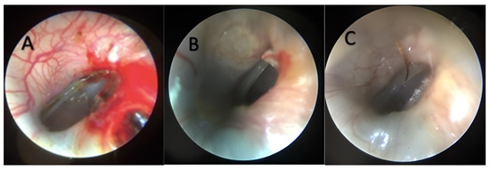 The present study has some limitations represented by the inability to realize a perforation of standard dimensions, in the study group the TM literally dissolved when we touched it with the cherry red heated stainless-steel port-cotton. The size of the perforation can influence the upcoming therapeutic decision and the surgical technique used to close the defect. We think that raising the temperature a little more would result in a more successful model, but it is important to find a balance because, beyond a certain temperature, the damage of the tissue will become inappropriate for the purpose of the model—namely to study new surgical techniques and new materials for tympanoplasties. Also, the size of the tip of the heated instrument might control the size of the perforation.