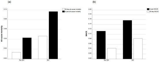 Mortality (a) and MACE (b) in patients with and without SH.