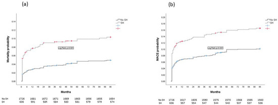 All-cause mortality and MACE in patients with and without SH are presented in Table 2 and in Figure 2.