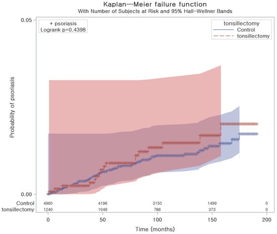 Kaplan–Meier curves of psoriasis in patients who underwent tonsillectomy.