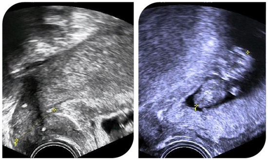 Figure 2 shows ultrasound images of a pregnant patient with cervical length measurements and cerclage position.