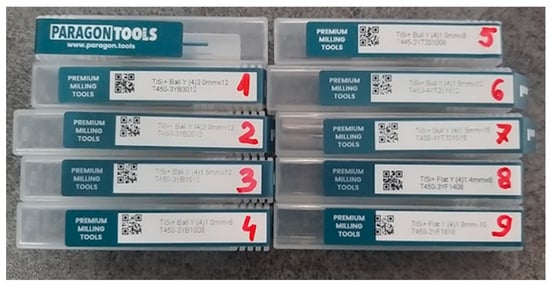 Paragon Tools manufactures high-quality Yenadent compatible milling tools, which is the result of collaboration between experienced cutting tool design engineers, CAD/CAM milling specialists, and milling tools plating experts. These tools have a very hard nanocomposite ceramic coating, the result of a silicon nitride matrix in which titanium and aluminum nitride nanocrystals are deposited, allowing high processing speed for complex titanium alloys, being resistant to wear and oxidation [41] (Figure 6).