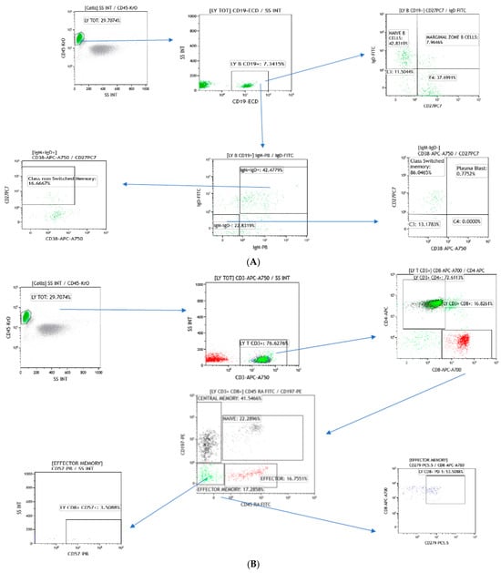 Lymphocytes B (A) and T (B) subpopulation panel investigated.