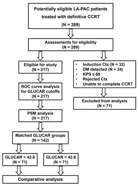 Novel Somay’s GLUCAR Index Efficiently Predicts Survival Outcomes in Locally Advanced Pancreas Cancer Patients Receiving Definitive Chemoradiotherapy: A Propensity-Score-Matched Cohort Analysis