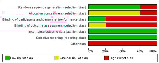 - Higgins, J.P.T.; Altman, D.G.; Gøtzsche, P.C.; Jüni, P.; Moher, D.; Oxman, A.D.; Savović, J.; Schulz, K.F.; Weeks, L.; Sterne, J.A.C. The Cochrane Collaboration’s Tool for Assessing Risk of Bias in Randomised Trials. BMJ 2011, 343, d5928. [Google Scholar] [CrossRef]