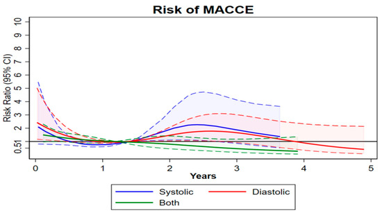 The long-term outcomes of the HF groups were compared with the cumulative incidence per 100 person-years and log-rank tests; the number of risks and frequency and the percentage of events at 1, 2, and 5 years; finally, univariable, propensity-adjusted, and multivariable Cox regression and Fines and Grays analyses. After fitting these survival models, we created survival and cumulative incidence graphs using the adjusted results and the curve function in Stata. In addition, cubic spline graphs using a GLM with Poisson family, log link, and robust estimates were produced to visualize changes in the risk ratio over time. Finally, risk factors for the long-term outcomes of the HF group were found by using a forward selection with high p-value criteria (0.5) and AICs. The risk factor analysis used Cox regression for all-cause mortality, and MACCEs and Fines and Grays competing risk regression for all other outcomes. All analyses were performed in Stata 17.0 (StataCorp, LLC. College Station, TX, USA). The 95% confidence intervals and p-values are reported, with a p-value < 0.05 considered significant.