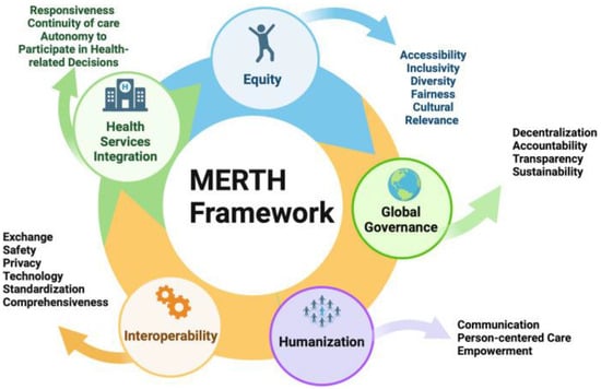 The MERTH framework will be used to code and categorize our findings systematically, ensuring a thorough and structured approach to identifying and addressing these key areas. Within this framework, five essential domains emerge: equity, health service integration, interoperability, global governance, and humanization through the application of artificial intelligence. This framework will serve as our guide to map the critical gaps and challenges in these fields of AI.