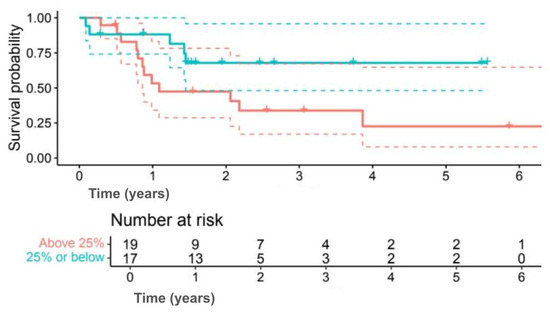 p = 0.048), and albumin levels (28 vs. 34 g/L,