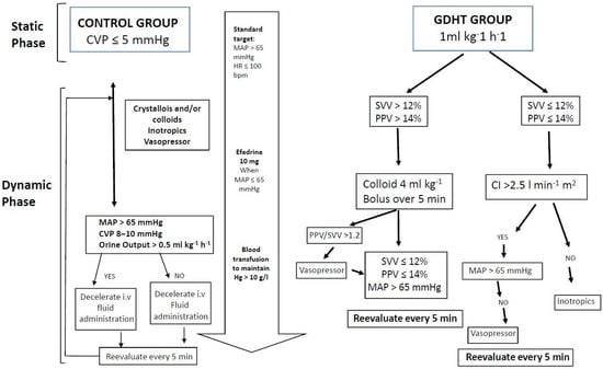 Haemodynamic optimization protocols aim to optimize preload and improve cardiac output and tissue perfusion [17]. Personalized haemodynamic optimization includes goal-directed haemodynamic therapy (GDHT). The main aim is to administer the fluid that benefits the patient by avoiding fluid overload, since this results to worse clinical outcomes and increase morbidity and mortality [18,19].