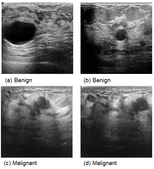 35] utilized two breast ultrasound datasets from different platforms, with breast ultrasound images as the primary dataset. The BUSI dataset contains 780 images, including 133 normal, 210 malignant, and 437 benign specimens. Another dataset (referred to as dataset B) includes 163 images comprising 110 normal and 53 malignant specimens. To improve the dataset, generative adversarial networks (GANs) were used to augment the data. The study explored the classification of breast ultrasound images using deep learning (DL), comparing CNN-AlexNet and transfer learning approaches, both with and without data augmentation. Over 60 training epochs with a learning rate of 0.0001, their model achieved an accuracy of 94% for the BUSI dataset, 92% for dataset B, and 99% when data augmentation was applied.