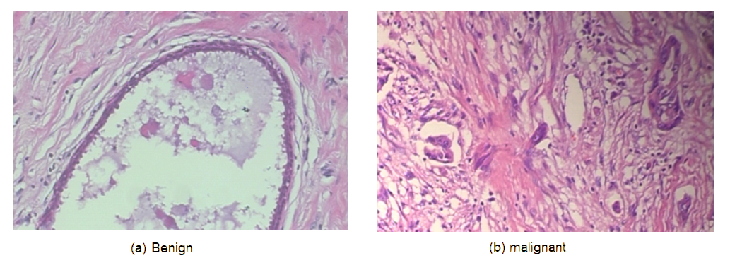 31] published a dataset containing 7,909 breast cancer histology images, classified into normal and cancerous categories. The primary objective of this dataset is to facilitate the automatic classification of these images into two groups, providing medical professionals with a useful computer-aided diagnosis tool. Their analysis achieved an accuracy of 80% to 85%, indicating room for improvement. The researchers employed machine learning algorithms such as KNN, SVM, quadratic linear analysis, and random forest for feature analysis.