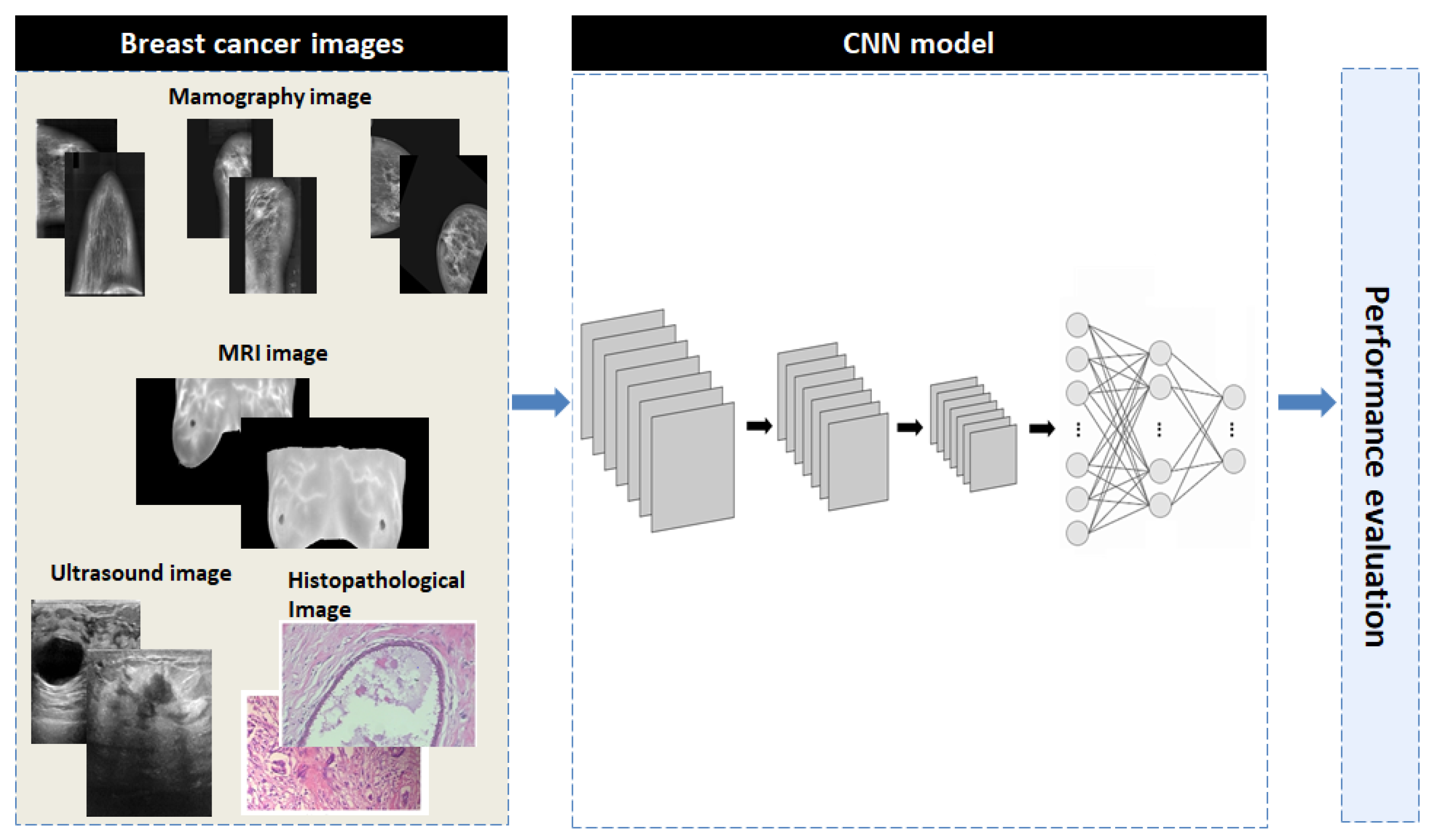 The objective of this study is to develop a unified, multimodal CNN framework that minimizes overfitting through optimized architecture design, enhances diagnostic accuracy, and eliminates manual feature extraction. By integrating multiple imaging modalities with deep learning, the proposed system aims to advance breast cancer diagnosis, enable earlier detection, and ultimately improve patient outcomes.